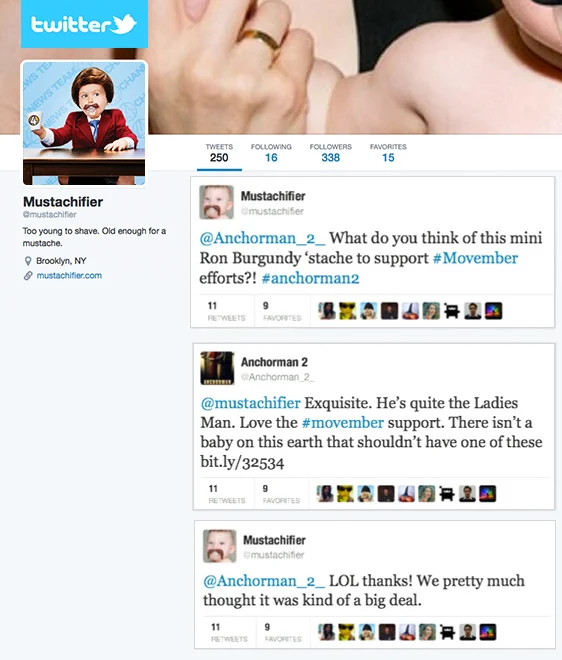 Potential Twitter exchange between Mustachifier and Anchorman2